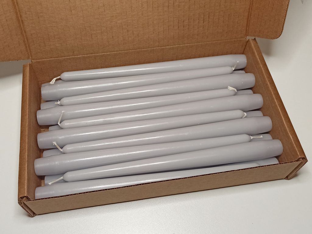 Классические длинные, античные свечи, серого цвета. Расширение в основании свечи 20 мм (Максимальное!). Обязательно сравните с диаметром вашего подсвечника или канделябра.