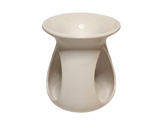 Белая аромалампа из керамики в виде символа лотоса, с глубокой чашей для ароматического воска. Помимо воска, можно использовать и с классическим составом - вода и эфирное масло. Чаша вмещает в себя 4-6 кубиков ароматического воска.