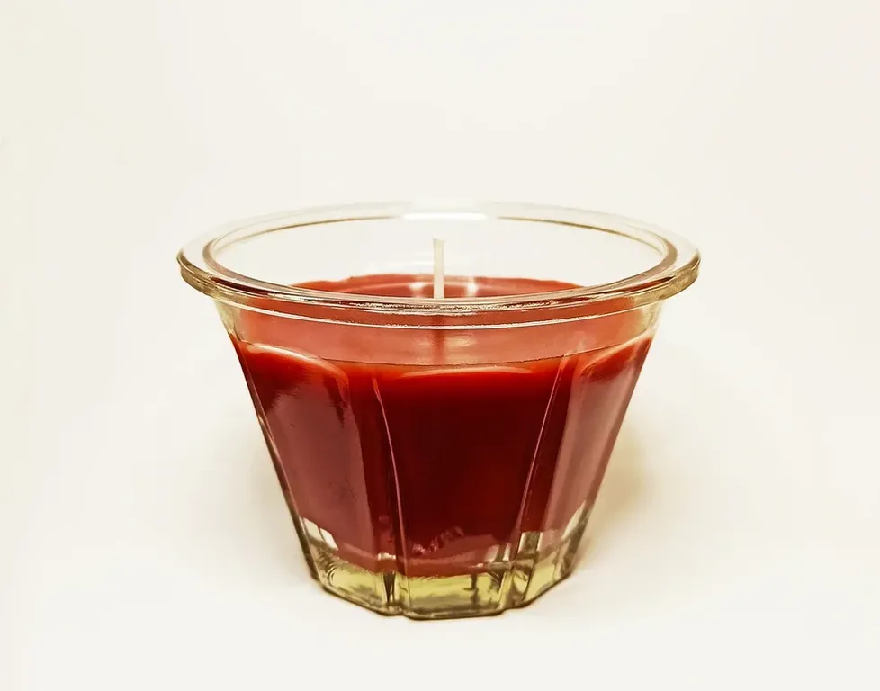 пищевой парафин, кокосовый и пальмовый воск, ароматизатор, краситель, фитиль хлопковый, фитиледержатель.