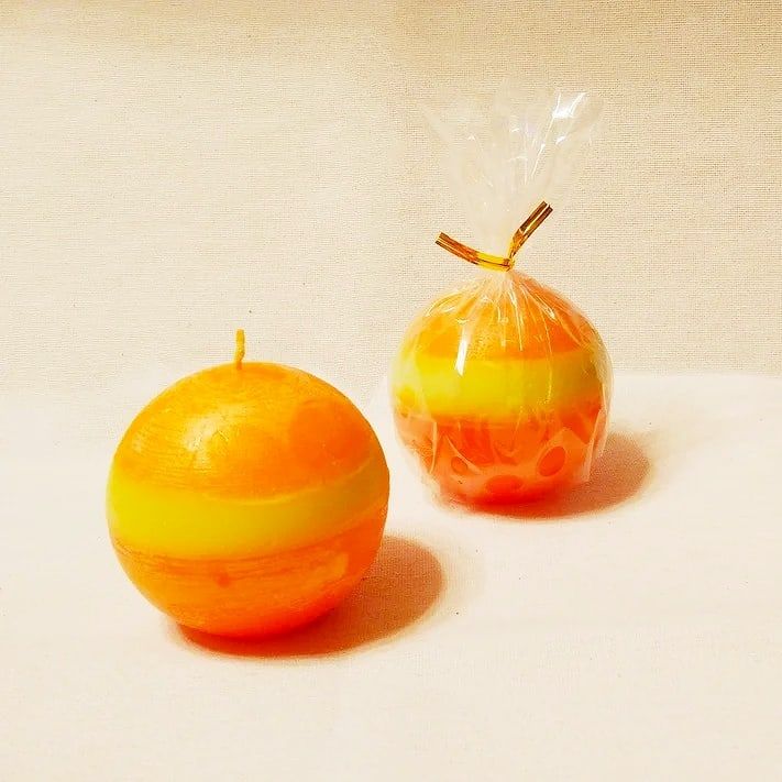 Свеча в форме шара с ароматами цитруса и лемонграсса в рустикальном стиле. Свечка с неоднородной поверхностью от светло оранжевого до ярко оранжевого и полосой зеленого оттенка. Поставляется в подарочном пакете с твист лентой. Степень ароматизации 4 из 5. Сама свеча будет пахнуть до 3-х недель даже если ее не зажигать. Ароматизирует пространство комнаты в 10 кв метров за 1 час горения.
