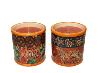 Свеча с ароматом бобов тонка и черного перца в керамическом стакане с изображением этнических мотивов, тигров и леопардов. Стаканы имеют два дизайна 1) Тигры 2) Леопарды. Если вам нужен определенный дизайн, сообщите нам об этом. Интенсивность аромата на 3,8 по 5 бальной шкале. Ароматичекие свечи в данных стаканах, идеально дополнят интерьеры в этническом, колониальном и африканском стиле. Сам аромат, один из самых популярных на рынке. Пряный и сладкий, главенствующий, который дают бобы тонка, и шлейфовый, закрывающий, сладко-терпкий аромат черного перца.