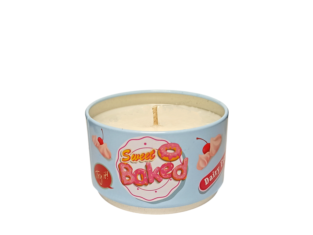 Ароматическая свеча в металлической банке, с пудрово-цветочным, парфюмированным ароматом. Цвет и принт банки, как на фото.