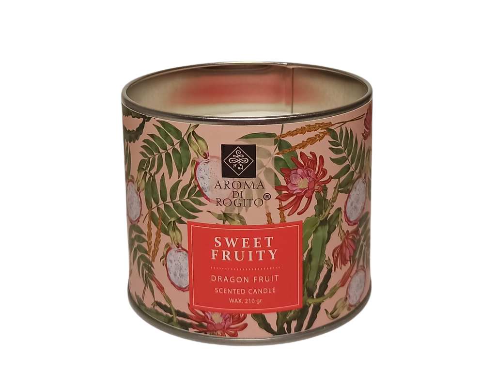 Свеча в металлической банке с ароматом Сладкие фрукты. Центральные ноты драгон фрукта (питайя) и шлейфовое послевкусие сладкого мангостина. Степень ароматизации пространства на 3,5 по 5 бальной шкале. Свеча подойдет в абсолютно любое помещение дома, но мы рекоменудем идеальное сочетание пространства для этой свечи - спальня и ванна (спа). Нежный, ненавязчивый аромат.