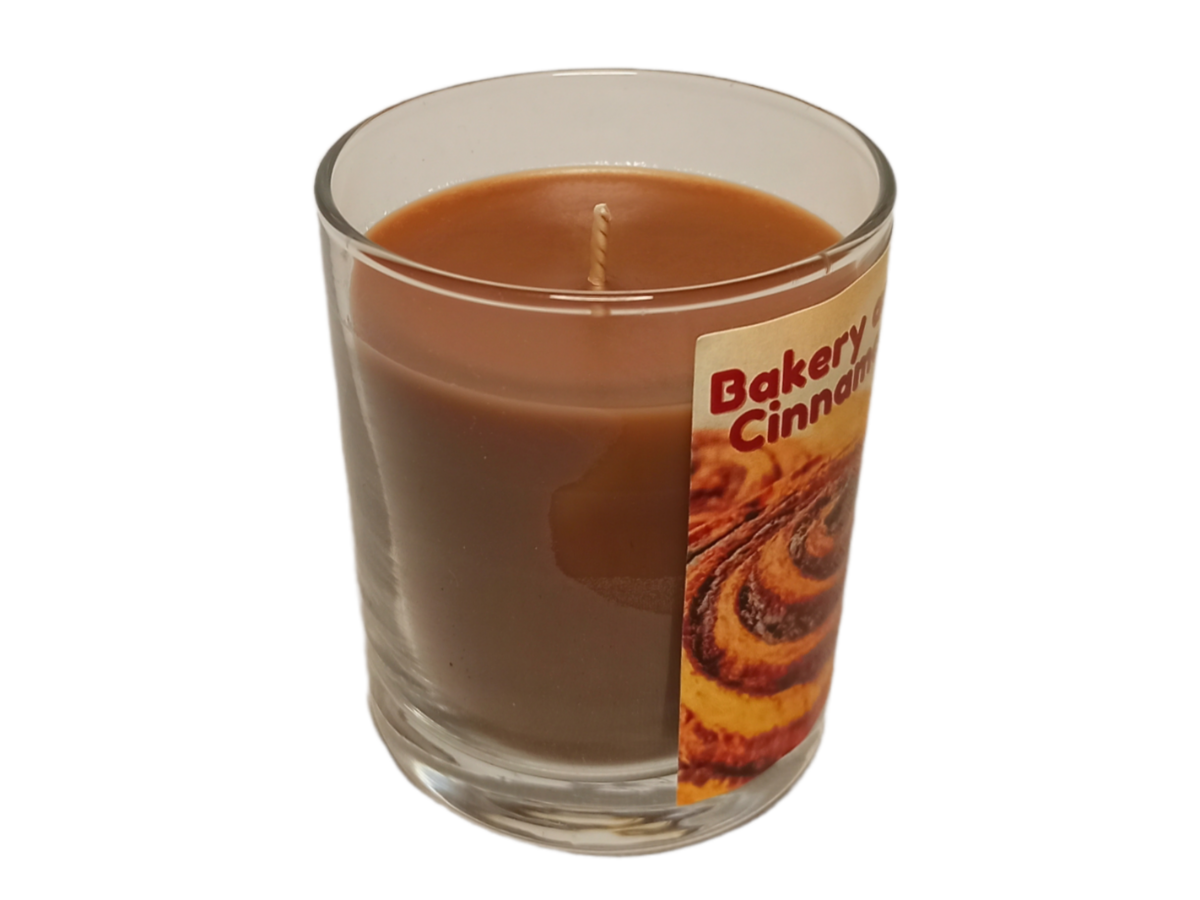 Свеча в стакане с нежным и тонким ароматом Булочек с корицей. Аромат не очень сильный и имеет степень ароматизации на 3 по 5 бальной шкале. Подойдет для небольших пространств, до 9 кв. метров. Для использования на рабочем столе во время работы, при посиделках с друзьями, за чашечкой кофе или чая. Так как корица обладает очень сильным ароматом приводящим к концентрации внимания, тут доза ароматизации уменьшена специально, и просьба, обратить на это особое внимание! Это именно нежный, ненавязчивый, аромат булочек с корицей в шлейфовой ноте.