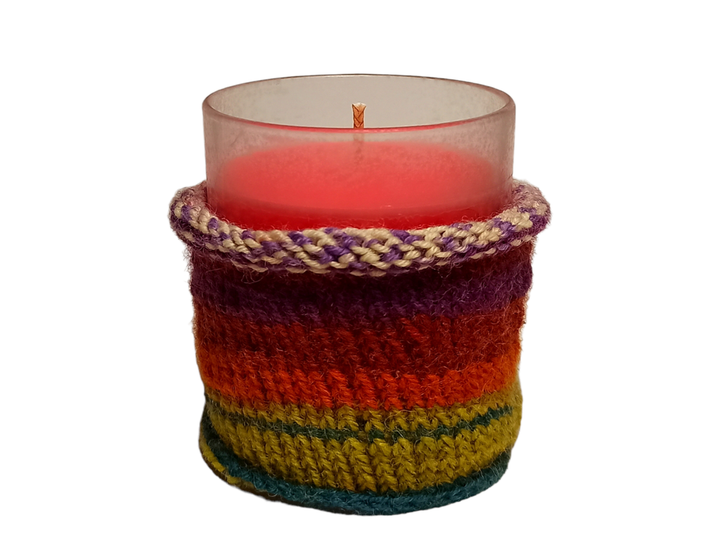 Декор: Стакан - стекло, вязаный чулок - нитка из шерсти.