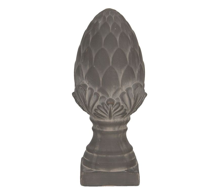 Керамический настольный декор в виде артишока. Выполнен из полой керамики, имеет асфальтово серый цвет как на фото. Используется для декора каминов, фальш каминов, подоконников, лестничных маршей, ставится на обеденные столы в качестве центральной композиции. В кабинетах и строгих помещениях в стилистике викторианской эпохи, используется в качестве настольного декора.