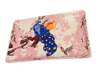 Керамическое блюдо для подачи десертов и закусок с принтом в японском стиле, с изображением павлинов. Цвет как на фото.