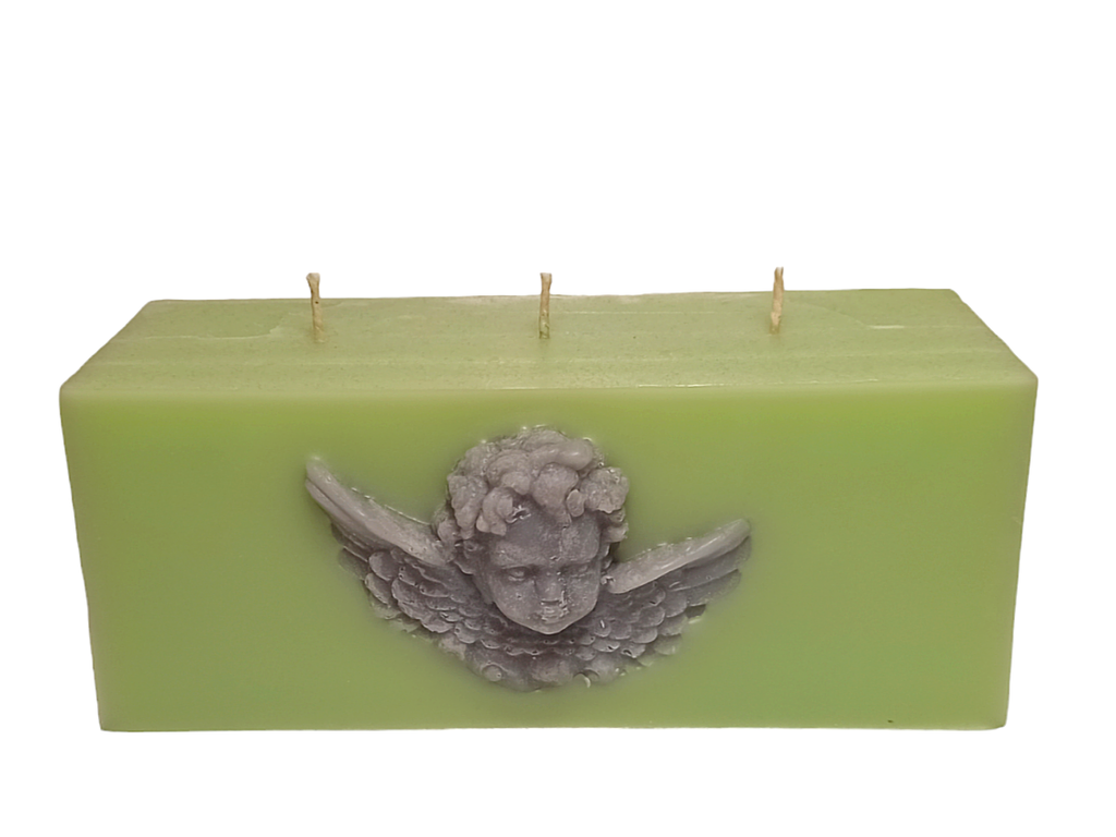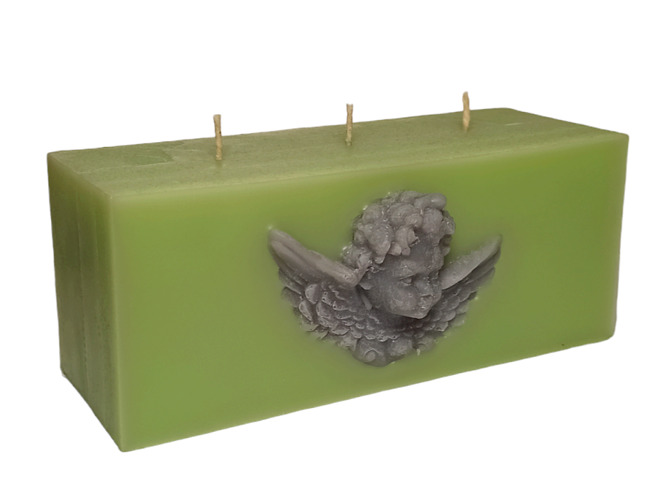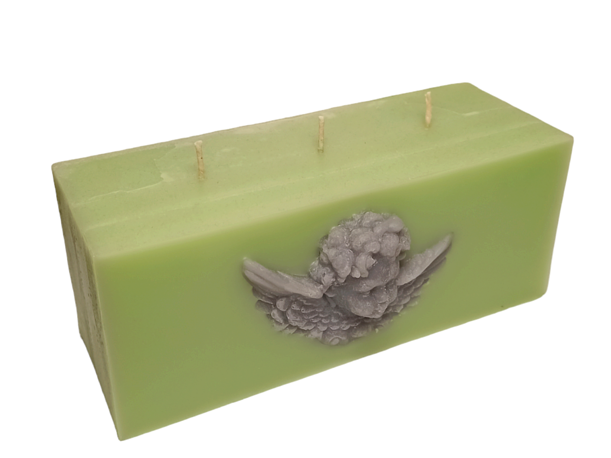 Большая свеча прямоугольной формы с барельефом Ангела. Свеча, своим видом, отсылает нас к массивной лепнине Версаля. Подойдет для установки в каминный портал, в библиотеку, в классический интерьер и на консольные столы.