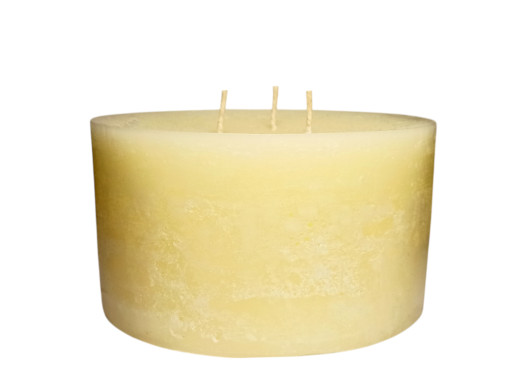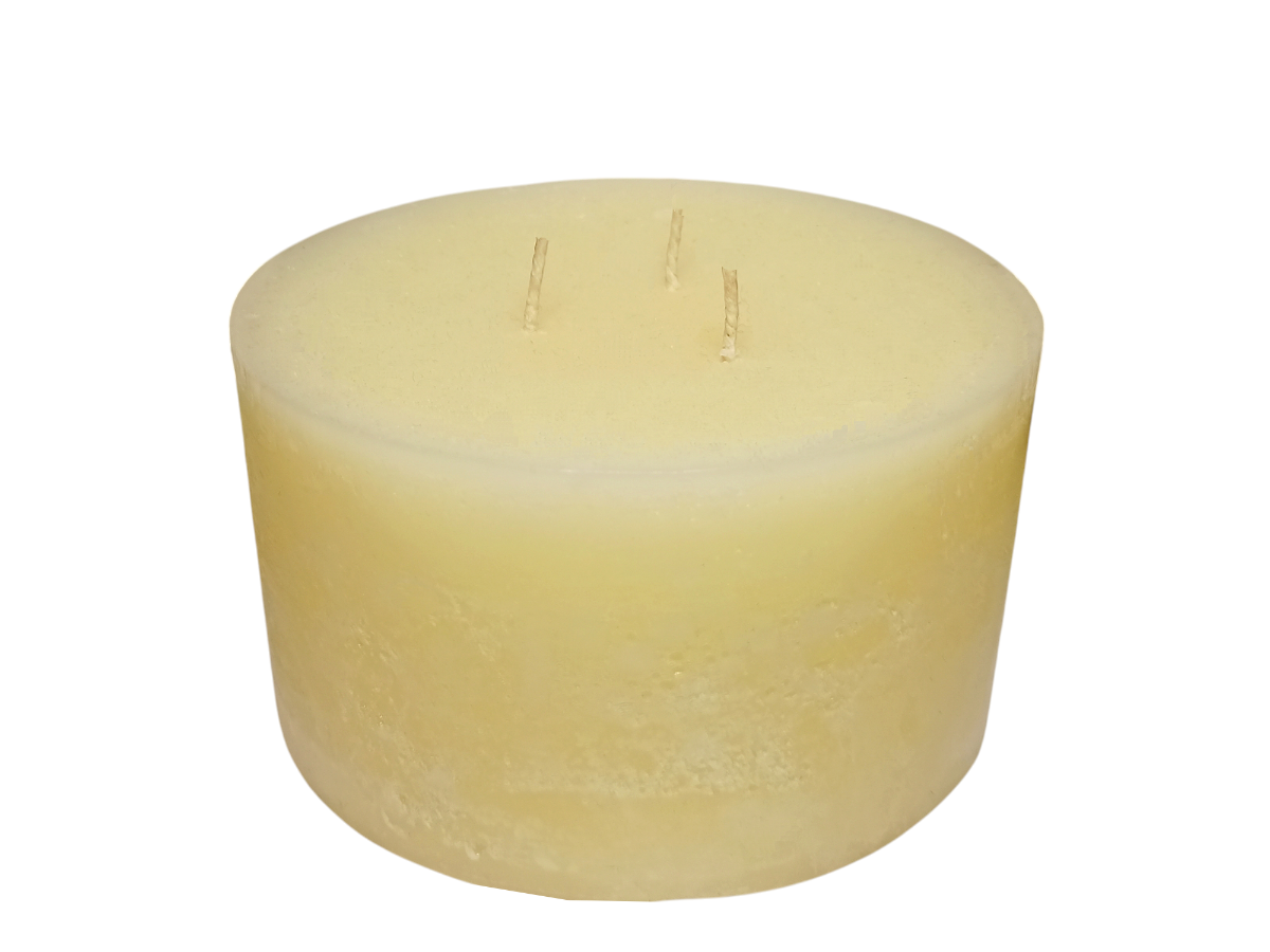 Большая интерьерная свеча с тремя фитилями, цвета слоновая кость, выполненная в технике рустик, с неоднородной, шершавой поверхностью. Свеча впишется в любой интерьер и может стать акцентной частью декора на столах, журнальных столиках, в каминах и на каминных полках, а так же на лестничных маршах.