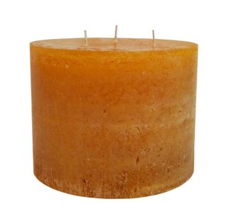 Большая интерьерная свеча цвета охры, с тремя фитилями и фактурной, пористой поверхностью.