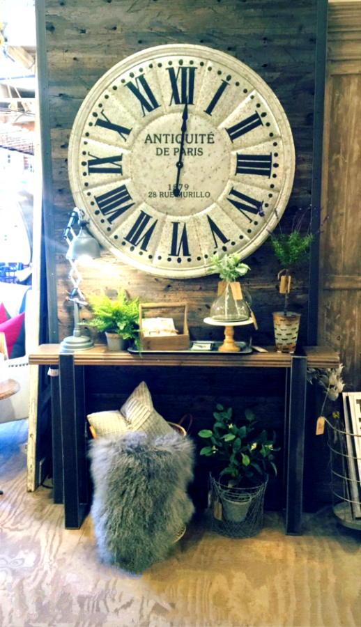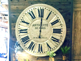 Огромные настенные часы с искусственно состаренной поверхностью и надписью "Antiquite de Paris 1879". Цвет часов как на фото, белый тусклый с потрескавшейся краской. Часы работают от батареек типа D. Одной батарейки хватает на пол года. Бесшумный ход. Встроенное отверстие для крепление на стену. Ниже, чтобы вам лучше понять размер, представлена фотография часов висящих над консолью на стене.