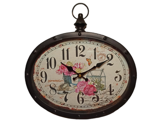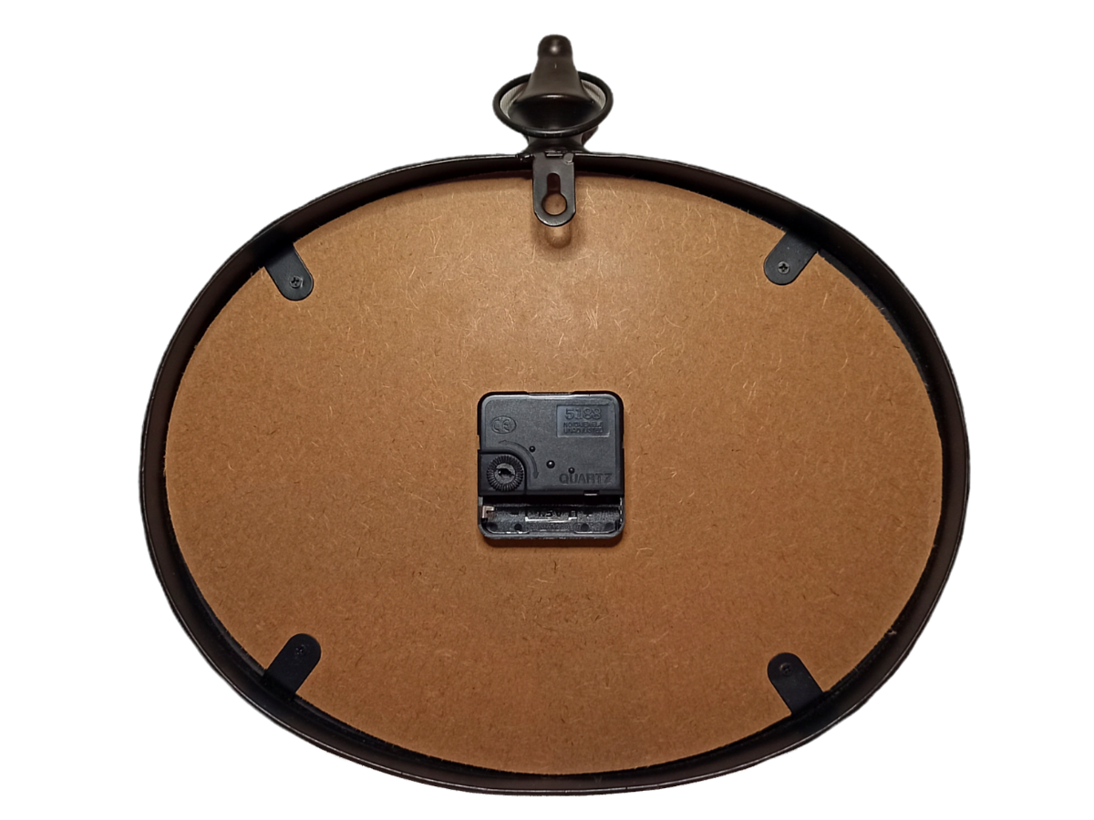 Овальные, настенные часы с кольцом, сделланные из металла с искусственно состаренным декором. Следы ржавчины, потертости. Индустриальный стиль выражен имитацией заклепок, популярный в Европе, в начале 19-ого века. Винтажный стиль подчеркнут рисунком на циферблате, выполненным в технике гравюр с ручным письмом. Изображение циферблата, как на фото. Часы работают от одной пальчиковой батарейки, типа АА 1.5 V. В коплект поставки, батарейка не входит. Кварцевый механизм. Имеется крепление для стены на задней части часов.