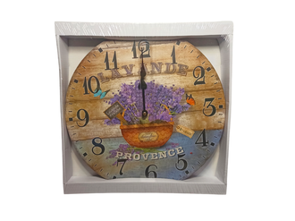 Настенные часы с изображением принта в францзском стиле Прованс. Букет лаванды в корзинке с надписью Provence. Работают от одной батарейки AA (в комплект не входит).