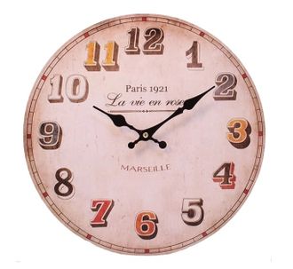 Винтажные часы на стену с надписью "Paris 1921 - Marseille". Часовой механизм работает от пальчиковых батареек или перезаряжаемых аккумуляторов.