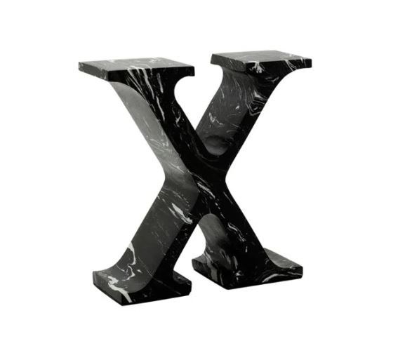 Декор для дома в виде настольной буквы X (Икс). Буква сделана из природного, натурального мрамора черного цвета с прожилками. Все буквы имеют неповторимый природный узор камня. Дизайнерские буквы для декора дома или офиса, это одна из фишек как можно выделиться. А когда декор еще и эксклюзивный, то тут точно надо поспешить! Буква со всех сторон имеет финальную обработку и может стоять в центре помещения, как на тумбочках и консолях, так и украшать рабочий стол или библиотечный шкаф с книгами.