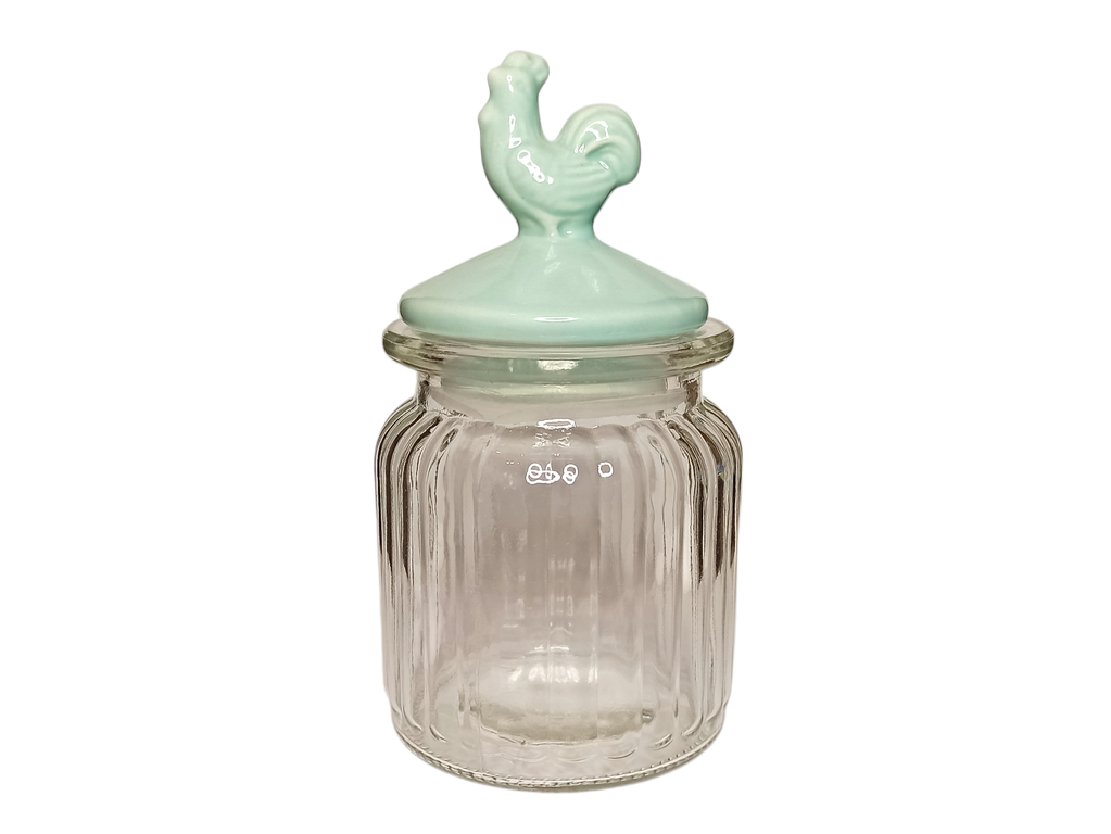 Банка из стекла с керамической крышкой для хранения и декора на кухне. У банки дизайнерская крышка из керамики небесного цвета и декором в виде французского петуха Le Cog (внегласного символа Франции). Подойдет в классические французские интерьеры типа: прованс, рустик, винтаж. А так же как подарок или декор на Пасху.