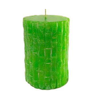 Декоративная свеча в виде бамбукового столбика, зеленого цвета. Подойдет в интерьеры в восточном, тропическом или колониальном стиле. Белые прожилки подчеркивают фактуру и рельеф свечи. Свеча упакована в подарочный прозрачный пакет. Цвет свечи - классические зеленые оттенки.