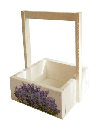 Декоративный ящик с ручкой и изображением Лаванды. Хит продаж среди флористических магазинов и цветочных салонов. Цвет ящика - белый.