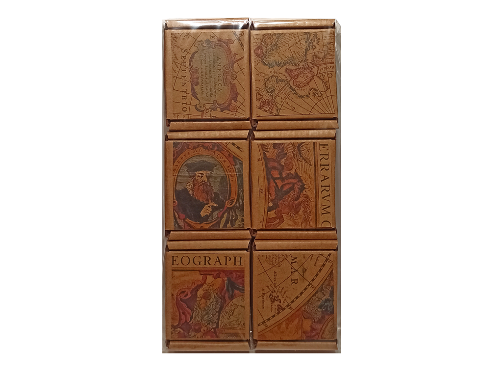 Набор дизайнерских спичек в крафтовых коробках, с изображением старинных карт Земли и оттисков гравюр. В наборе 6 коробков спичек. В каждом коробке по 100 классических спичек. Сбоку на каждом из коробков есть чиркающий слой для поджига спичек. Комплект из шести коробков упакован в пакет как на фото. Наши спички, это эксклюзивный продукт сделанный для поддержки наших винтажных коллекций декора, акцентной мебели и рустикальных свечей. Они подойдут для подарка, для фотосессий вместе со свечами, для декора простраства рабочего стола, каминной полки или хранения рядом с фонарями латернами.