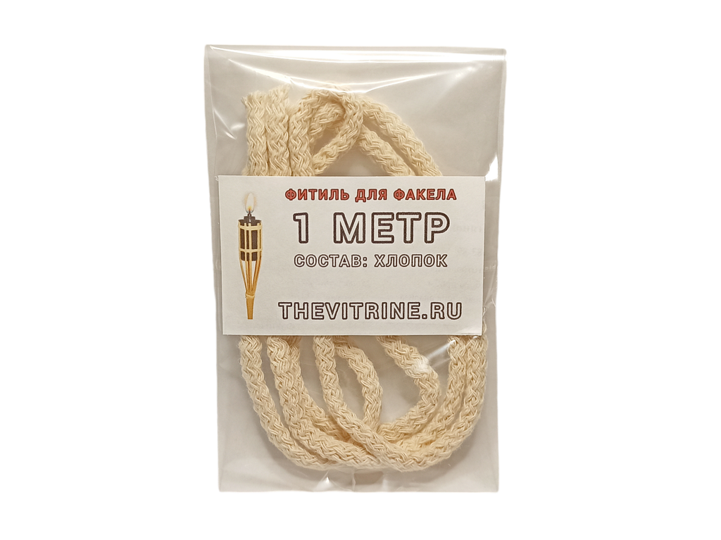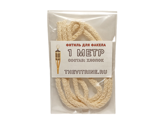 Фитиль для уличных и садовых факелов. Толстый фитиль из хлопковых нитей с волокнистым наполнителем по центру, позволяет без труда впитывать из емкости факела, достаточный объем факельного масла, для правильного горения фитиля. Подходит для стандартных бамбуковых факелов, произведенных в странах Азии. Мы рекомендуем разрезать метровый фитиль на отрезки по 16-17 см в ёмкости до 250 мл, и по 25 см, в ёмкости факельных бутылок от 300 мл, для оптимального и экономичного использования.