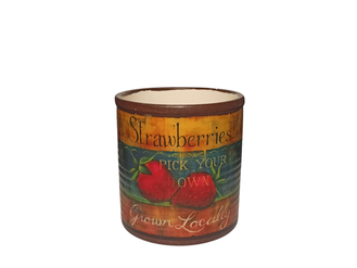 Винтажное кашпо для цветов из керамики. Цвет как на фото. Изображение выполненно в искусственно состренном виде с рисунком клубники и надписи Strawberris. В дне кашпо предусмотрено дренажное отверстие. Стильный винтажный аксессуар для дома и сада.