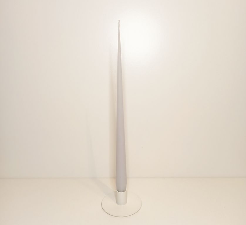 Коническая свеча серого цвета, высотой 36 см. Подходит для декора столов на свадьбу, фотозон и украшения витрин.