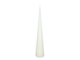 Свеча в виде глянцевого конуса белого цвета, с рустикальной, фактурной поверхностью.