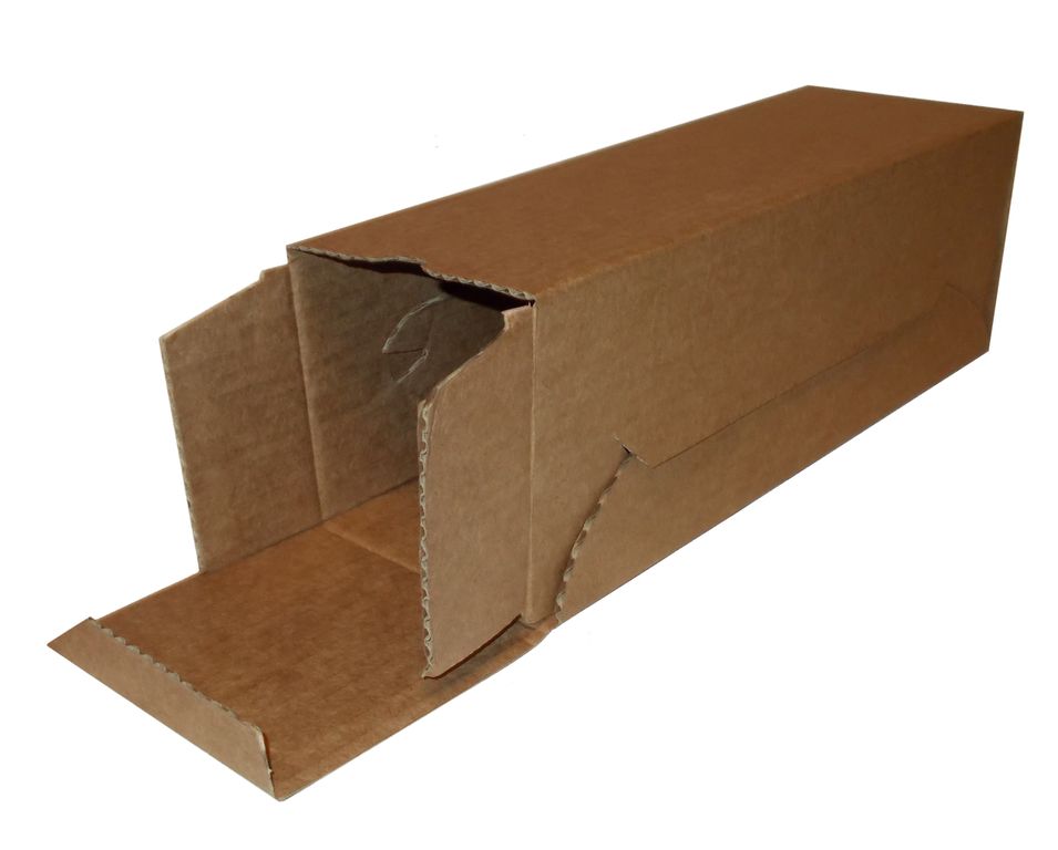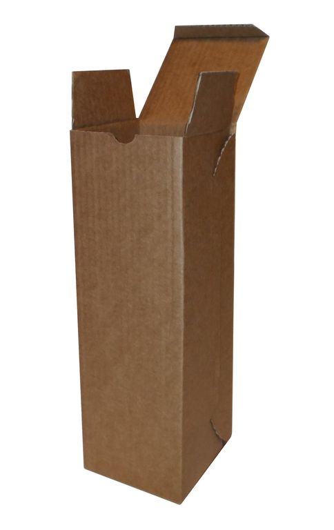 Коробка из плотного гофрированного картона, коричневого цвета (как на фото). Поставляется в разобраном виде. Собираетсяменьше чем за одну минуту. Надежные крепления и плотный картон спокойно выдерживают бутылку шампанского или вина.
