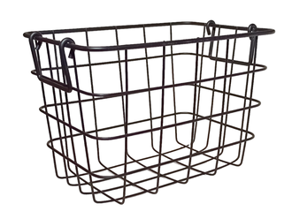 Настольная корзина из металлических прутьев черного цвета, с ручками, для мелочей. Корзина выполнена в индустриальном стиле и подходит для декора современных интерьеров, от гостиной и кабинета, до ванной и кухни.
