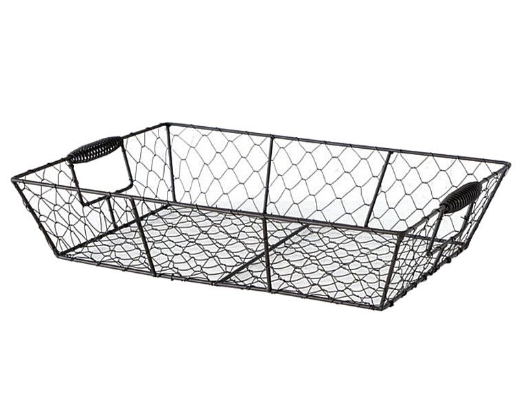 Корзина в фермерском стиле из металлического каркаса и сетки. Такие вещи отсылают нас в новый свет 50-х годов, на фермерские угодья центральной Северной Америки. Тогда фермеры использовали такие корзины для сбора фруктов, овощей и яиц в птичниках. А если положить поверх полотенце, то в таких корзинках, женщины переносили мужчинам обед, на ближайшее поле, где те работали. Сейчас такие корзины-подносы, набирают новую популярность, но уже как предмет коллекционирования или акцентного декора в жилые дома и офисы. А использовать вы можете её, как пожелаете: и на кухне, и в гостиной, и в прихожей, и в офисе, и даже в кабинете для складирования писем.