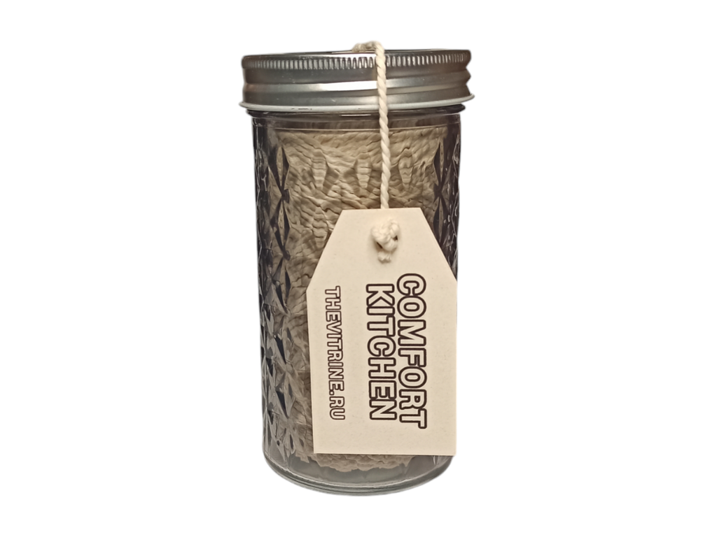 Наша хлопковая нить лежит в удобном стакане из дизайнерского, рельефного стекла с голубовато-графитовым оттенком и металлической крышкой. В комплекте 75 метров нити. После того, как вы ее используете, просто вставляете в стакан, новый рулон хлопкового шпагата и продолжаете творить свои кулинарные шедевры!