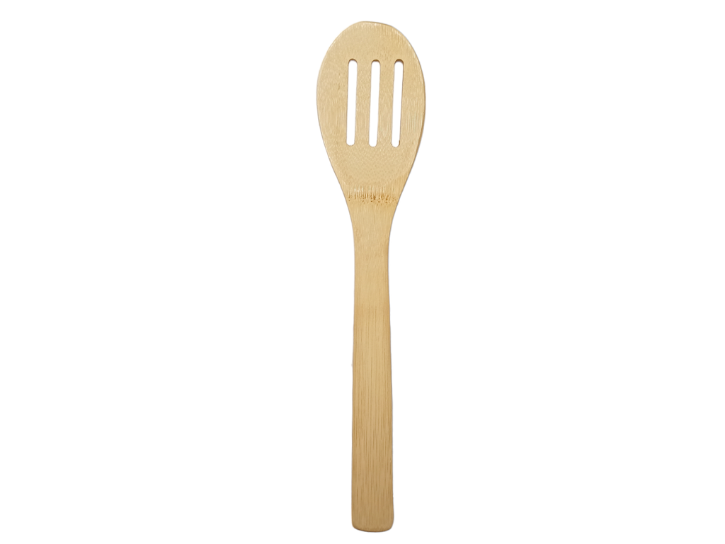Бамбуковая ложка для кухни. Подходит для размешивания горячих блюд - супов, спагетти, рагу. Имеет три прорези в чаше ложки. Изготовлена из бамбука, известного своей устойчивостью к горячему. Прочный, стильный, экологичный и долговечный аксессуар для вашей кухни.