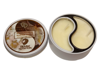 Две миниатюрные массажные свечки в баночках Инь-Янь, в еще одной металлической, подарочной баночке. Объём каждой свечи, всего 15 мл, чего хватит на проведение только одного массажа.