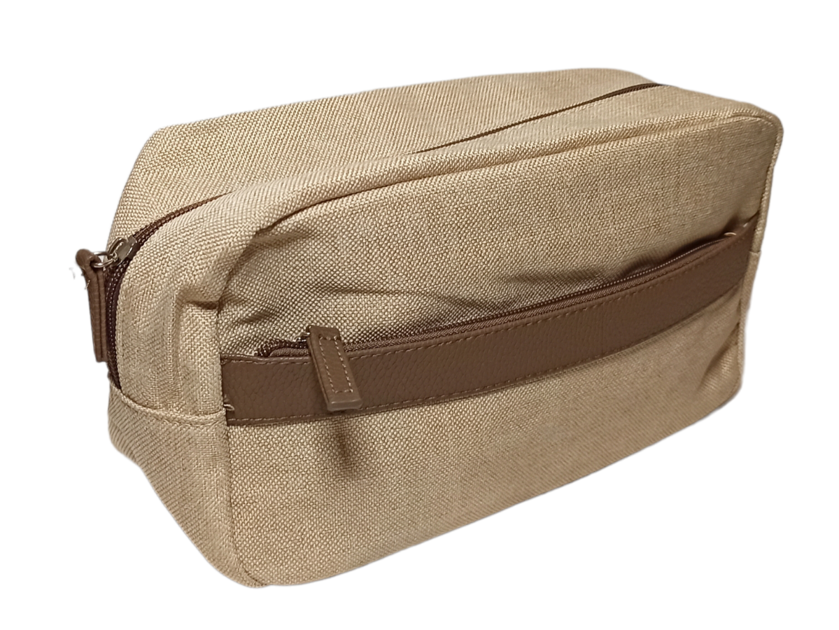 Косметичка для мужских принадлежностей выполненная из ткани цвета песка в Дубае, от чего и получила такое название. Стильная и строгая с вставкой из эко кожи с большим объёмом, позволит вместить все мужские принадлежности для ванны в тревел поездке. Снаружи выполнена из хлопково-льняной ткани. За счет льна быстро сохнет. Внутри прошита атласной тканью. Имеет боковой кармашек для мелочей.