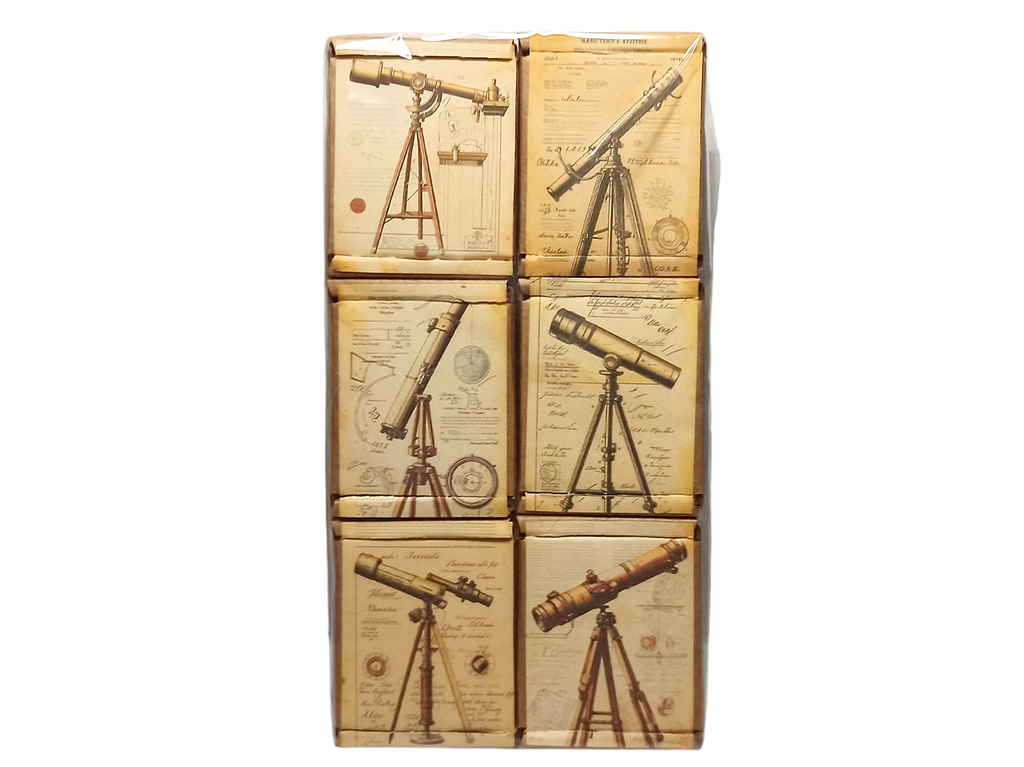 Набор спичек состоящий из 6 коробков с изображением искуственно состаренных гравюр с изображением подзорных труб. Крафтовые коробки отсылают нас к винтажному стилю. Рваное, искусственно состаренное нанесение. Подходят для классических кабинетов, каминных полок оформленных в историческом стиле. Подойдут для старинных фотосессий, как аксессуар для съёмок в кино, или просто украсят ваш стол со свечами.