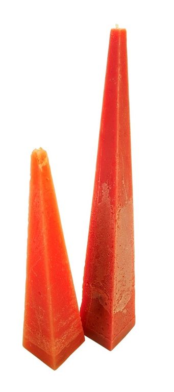 Большая интерьерная свеча в форме пирамиды с одним фитилем, высотой 75 см. Свеча имеет рустикальную неоднородную поверхность как на фото.