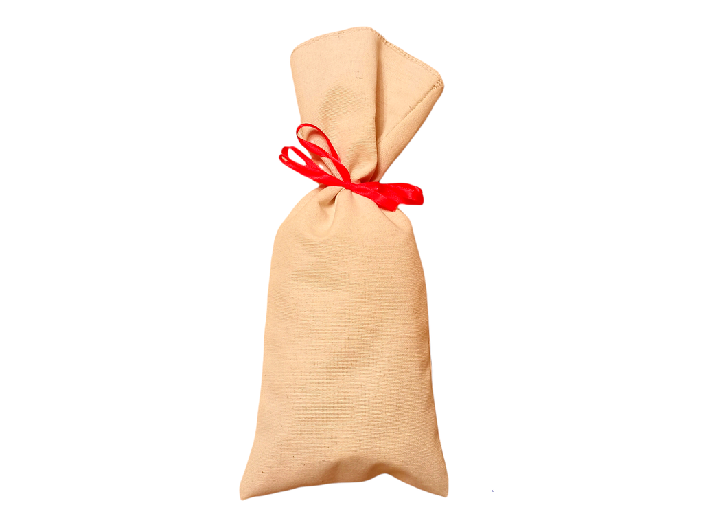 Тканевый декоративный мешок с лентой для новогодних подарков. Подходит для сладких подарков детям на новый год и рождество, для корпоративных подарков и презентов коллегам. В данную модель новогоднего мешка для подарка, помещается классическая винная бутылка серии "бордо".