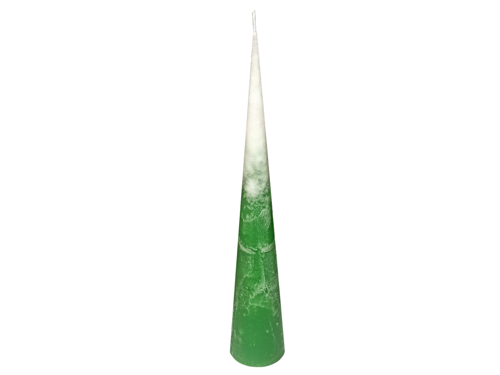 Свеча в виде конуса, символизирующего новогоднюю елку. Верхняя часть свечи белого цвета, нижняя часть зеленого цвета. Как будто перед вами заснеженная елка. Свеча является ароматической и имеет аромат: молодой ели, морозной свежести и сладкого мандарина. Прекрасный новогодний аромат и красивая, декоративная свеча в скандинавском, минималистичном стиле. Свеча упакована в пакет.