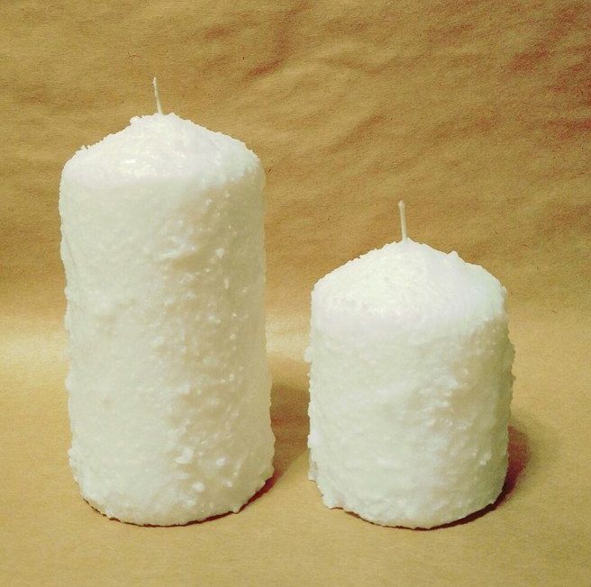 Заснеженная свеча в виде пикообразной свечки колонны белого цвета, с эффектом снежного налета.
