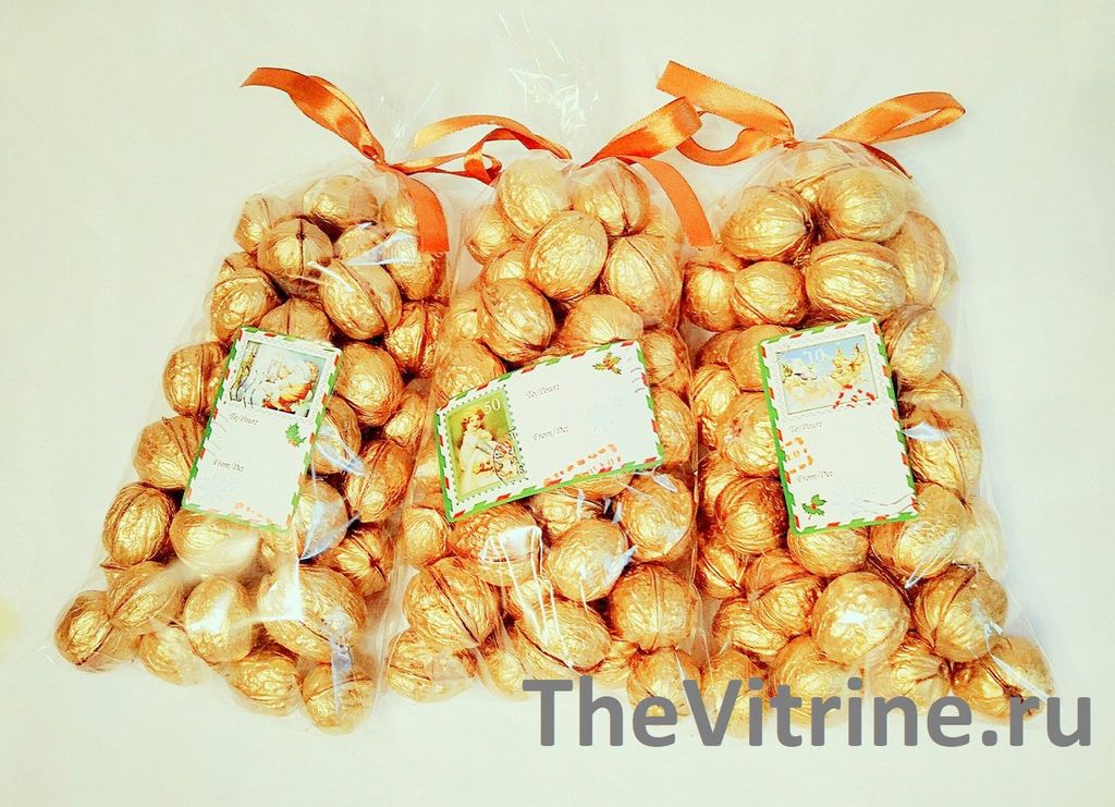 Золотые орешки с предсказаниями в количестве 200 штук, поставляются в подарочных пакетах, с бантиками из шелковой ленты. Все предсказния внутри орешков, несут положительные смысл и содержат от одного до трех предложений текста.