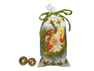 Подарочный мешочек с Дед Морозом и с набором из 30 золотых орешков с предсказаниями.
