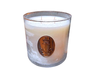 Большая, интерьерная свеча с парфюмированной композицией и четырьмя фитилями. Свеча залита в итерьерную вазу из дутого стекла ручной работы. В стекле есть застывшие пузырьки воздуха и волнистые линии стекольной массы, подчеркивающие ручную работу мастера стеклодува. Украшает свечу металлизированный вензель на внешней стенке вазы. Аромат свечи - классический, нейтральный, интерьерный (парфюмированный, приглушенный шипровый аромат с нотками нероли, мандарина и жасмина). Шлейфовый мотив дополняют ноты хлопковых бутонов. Такая массивная свеча в вазе, станет украшением любого салона, бутик отеля или ресторана.