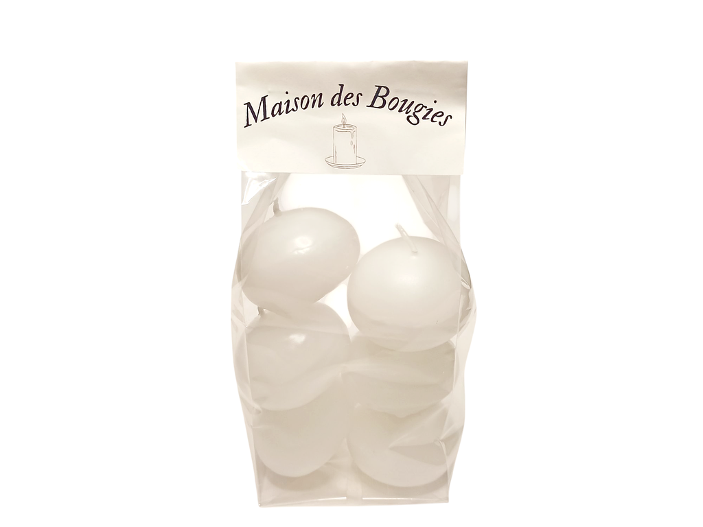Классические плавающие свечи белого цвета. Плавающие свечи используют для декора свадеб, украшения интерьеров, ими наполняют вазы колбы и настольные вазочки на мероприятиях и в ресторанах, с ними делают цветочные композиции. Цена указана за упаковку из 6 свечей.