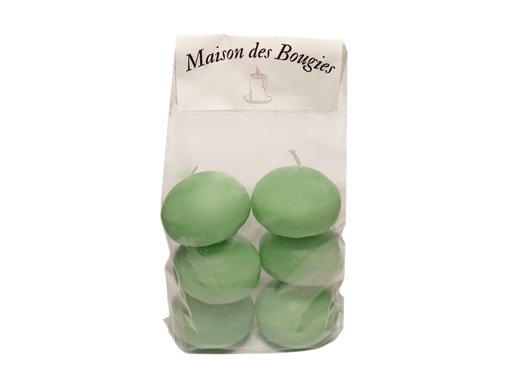 Набор плавающих свечей лесного, зеленого цвета. Цена указана за упаковку из 6 свечей.