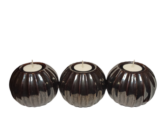 Набор из трех больших подсвечников для чайных свечей, в форме керамических, ребристых шаров, покрытых черной краской с небольшим, зеркальным эффектом. Благодаря своим объёмам, прекрасно впишутся в качестве доминантного декора на большой стол в столовой, или длинный журнальный столик или консоль. Благодаря стильному дизайну, благородному черному цвету, и минималистичному внешнему виду, впишутся в любой интерьер. Идеально подойдут в пространства с классическим интерьером, лофт интерьером, техно интерьером. Строгий черный цвет и классическая геометрическая форма, делает данный набор подсвечников, актуальным всегда, вне времени. Набор подсвечников поставляется с комплектом из трех чайных свечей в гильзе.