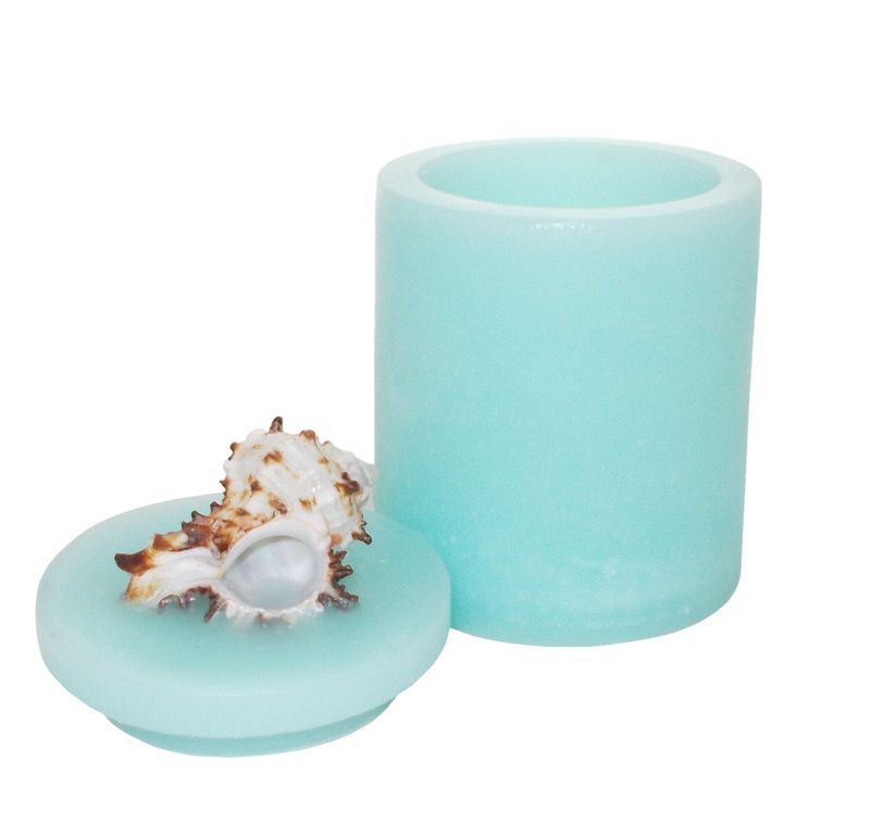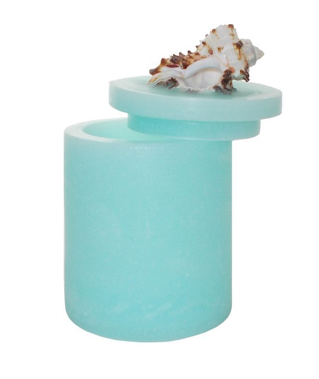 Лампион подсвечник с крышкой и настоящей морской раковиной в оттенках от лазурно-бирюзового цвета, до цветов аквамарин и атлантида. В подсвечник вставляют обычные чайные свечи в алюминиевых гильзах или свечи в стаканах, диаметром до 7 см. Благодаря необычным цветам, свет от свечи получается приглушенным и рассеивающим, напоминающим переливы морских волн.