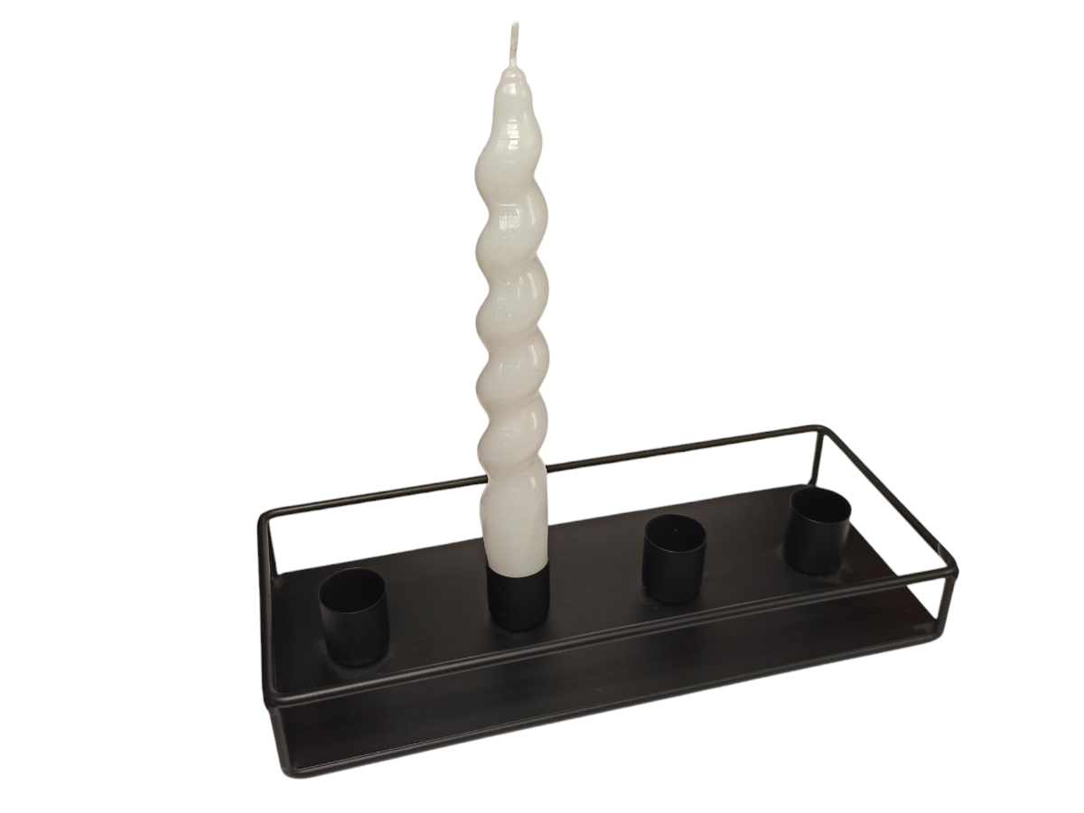 Сделан из толстого, прочного металла, покрашенного черной, порошковой краской. Можно мыть в горячей воде с обычными чистящими средствами. Имеет стандартный диаметр держателей для всех классических свечей, диаметром основания от 2 до 2,5 см.