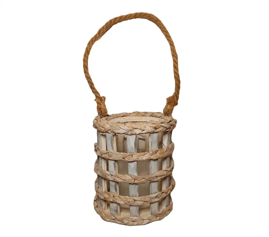 Подсвечник в колониальном, тропическом стиле, сделанный из дерева, лозы и джутовой ручки.