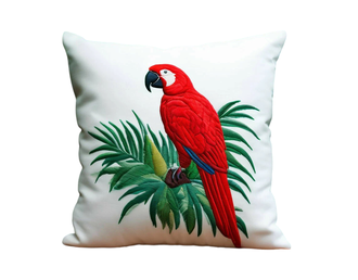 Подушка интерьерная красный попугай вышивка 40 см