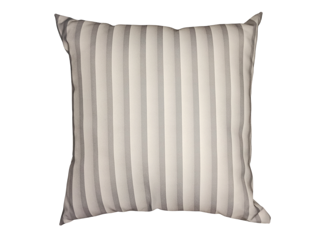 Интерьерная подушка с синтетическим наполнением. Одна сторона серые полосы, вторая сторона белая. Подходит для дома и общественных пространств. Несъёмная наволочка. Можно использовать уже как готовую подушку для интерьера или под декоративные и дизайнерские наволочки 40x40 см. На подушке есть бирка по уходу и стирке.